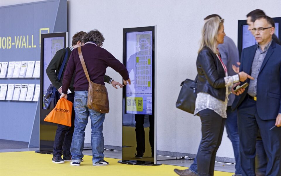 Die Multitouch-Display Stelensysteme sind der moderne und elegante Blickfang für Präsentationen an verschiedensten Einsatzorten: Fachmesse, Kongress, Tagung, Bildungseinrichtung, Hotel, Einkaufszentrum, Produktions- und Fertigungsstätte, Empfangshalle und andere stark frequentierte Flächen – mit ihrem schlanken und ansprechenden Design sind die digitalen Werbetafeln beeindruckende Hinweisdisplays im Hochformat und werten nicht nur optisch, sondern auch repräsentativ Ihre Veranstaltung auf.